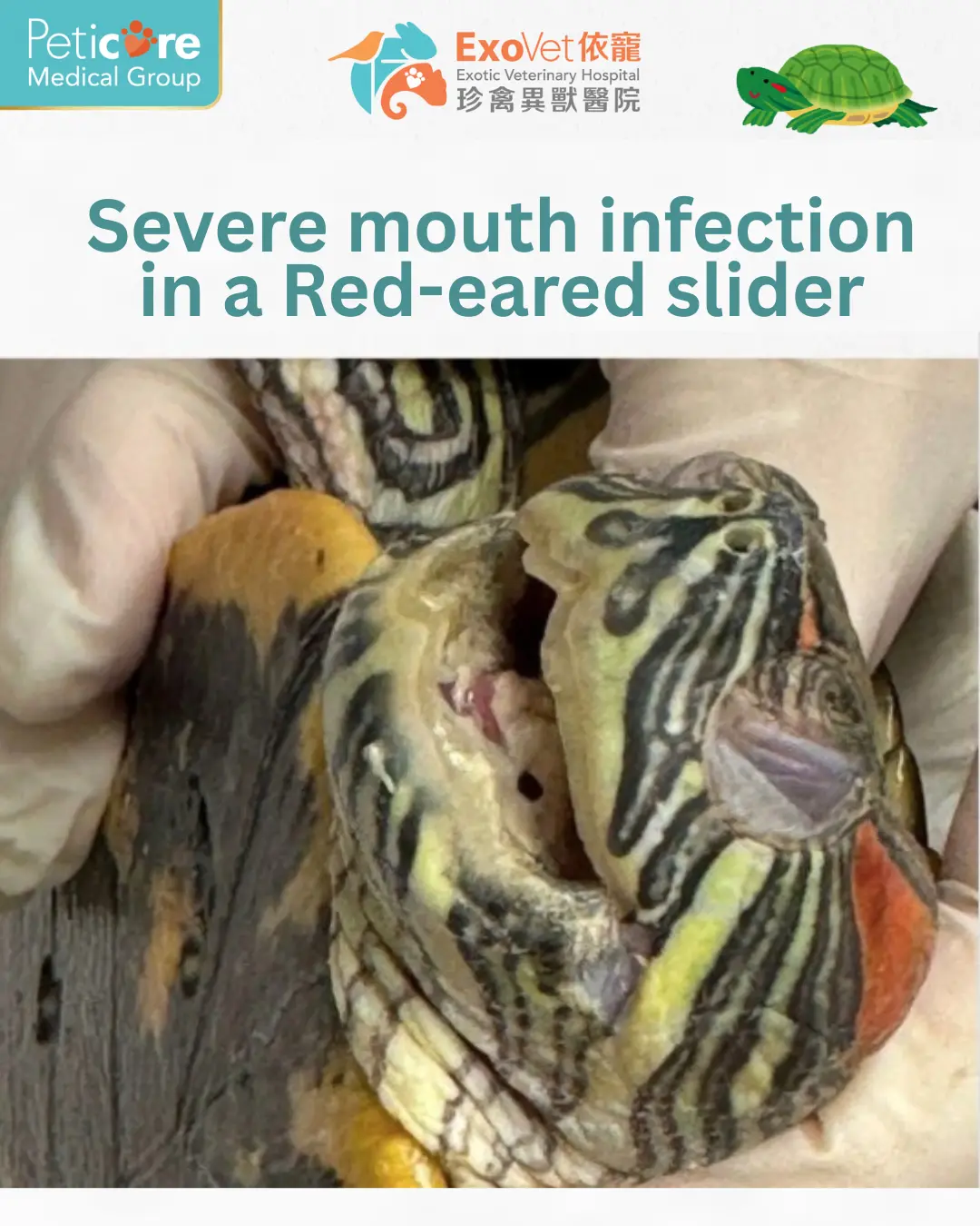 35歲的紅耳龜Grace,眼睛腫脹,沒有胃口。