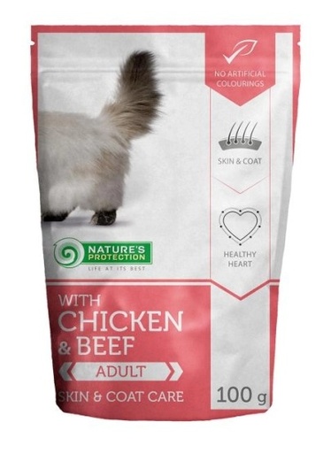 NATURE'S PROTECTION 皮膚和皮毛護理保護濕包(雞肉和牛肉味) 成貓專用 100g