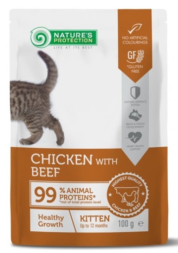 NATURE'S PROTECTION 健康成長保護(雞肉和牛肉味) 幼貓專用 貓糧濕包100g