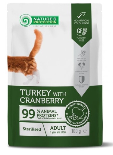 NATURE'S PROTECTION 絕育配方(火雞和蔓越莓味) 絕育貓專用濕包 貓糧 100g